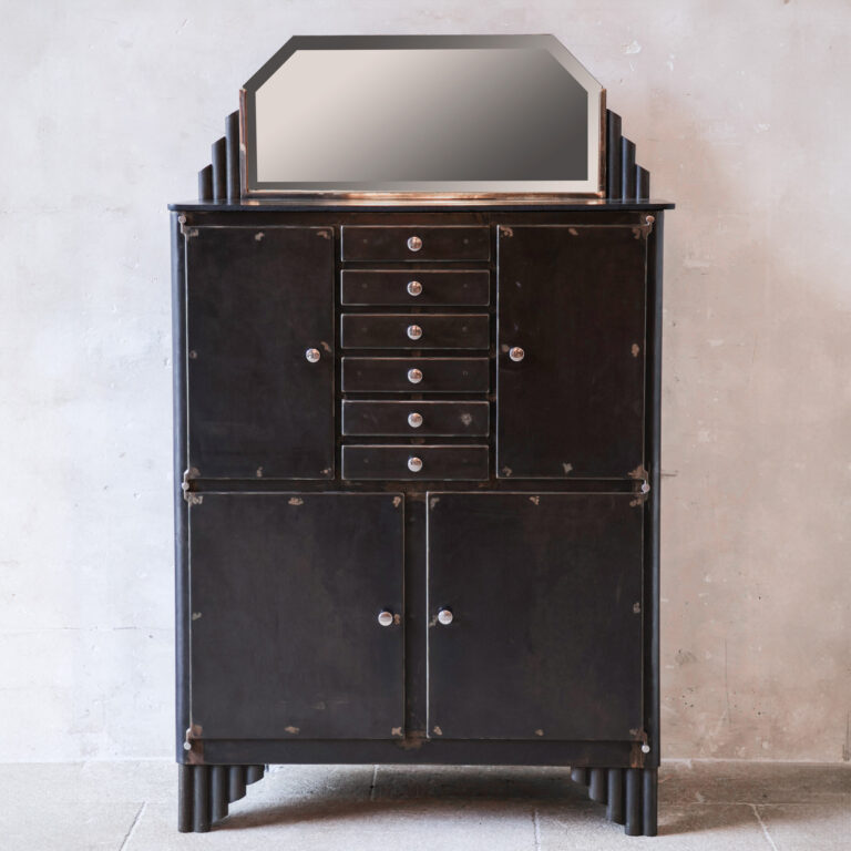 Art Deco metal dentist or medical cabinet with mirror