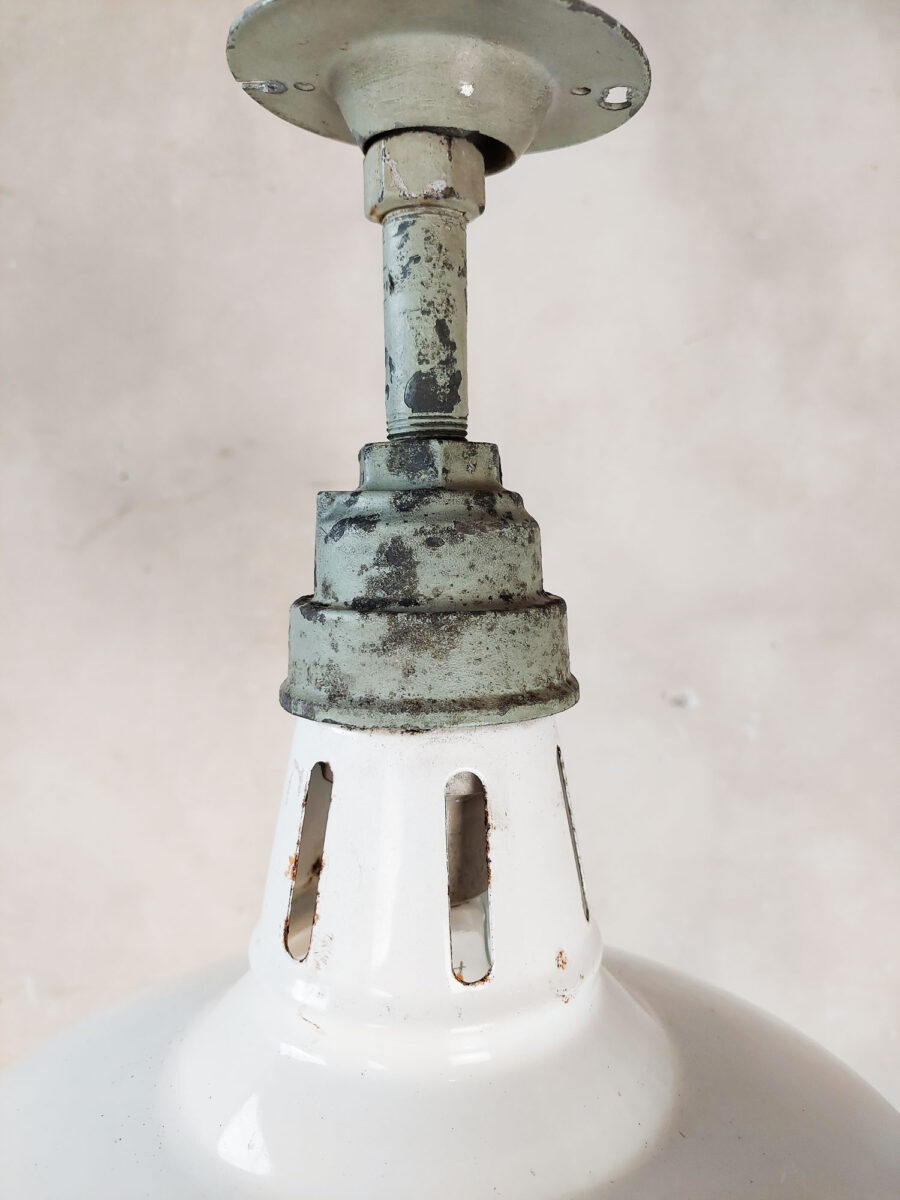 Industrial hanging lamp with white enameled shade