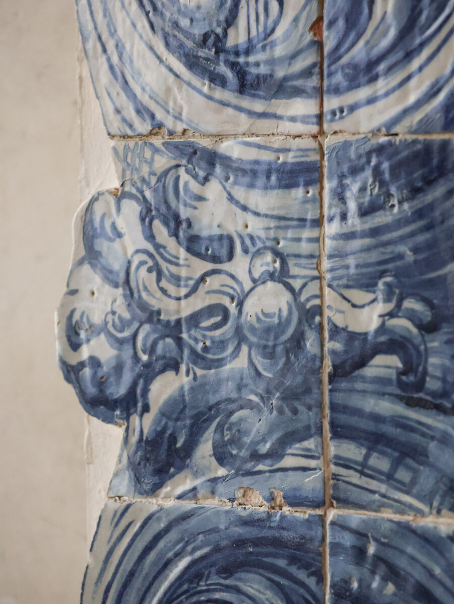 Such antique Baroque tile tableaux were historically used to adorn niches, passageways, and representative wall surfaces in distinguished interiors. As shown in the bathroom example, this exceptional piece of antique tilework offers a rare opportunity to introduce an authentic historic accent into both classical and contemporary spaces. A striking and scarce architectural element for those seeking large-scale decoration with a refined and timeless character.