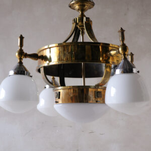 Pair of Hollywood Regency chandelier with leaves and opaline glass spheres